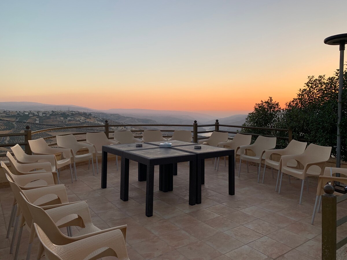A very nice Holiday House with best view in Jordan , usually People take it for Day ( 20 Person ) and for sleeping it can take 3 persons , it have a private pool and playing area .