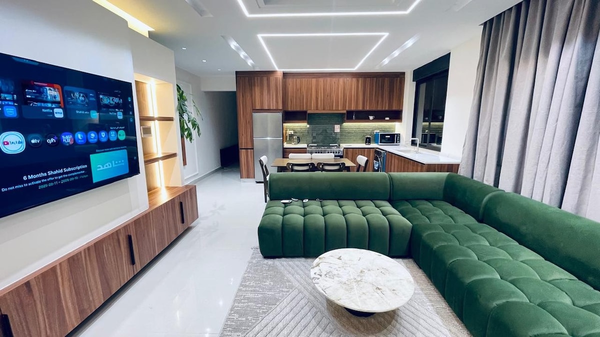 Escape to our peaceful and stylish apartment in the heart of Amman! Enjoy in the midst of the city buzz. The apartment in a luxurious place of Amman, exactly next to two malls (Barkeh and Avenue), Wakalat Street, shops, restaurants, hyper markets, embassies and even the airport for hassle-free travel. Contact-Less CheckIn (Smart code will be provided) 24/7 Security with CCTV Camera Remote Key for covered parking & free visitors parking Experience the serenity vibes of Amman right here!