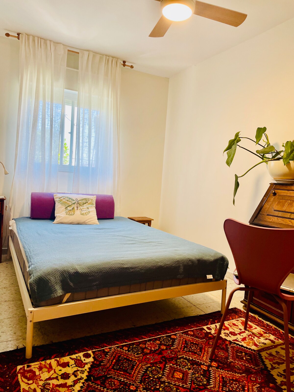 חדר משלך. עם קליטה נהדרת לווי פי, חלון שפונה לגינה ירוקה. שולחן עבודה משלך. וארון בגדים. ודלת שאפשר לנעול. והכל בתוך בית שקט שקט מוקף ירוק. במרחק שתי דקות מכולת ותחבורה ציבורית לכל מקום. וההרגשה היא של בית❤️🙏 מטבח מאובזר. זמין לשימוש וגם תה וקפה וכל מה שצריך. וכמובן מדף משלך במקרר. כמו כן חנייה בחינם. ויש 2 דקות מהבית חניון של הרכבת הקלה בחינם לכל מקום. למי שמגיע עם רכב