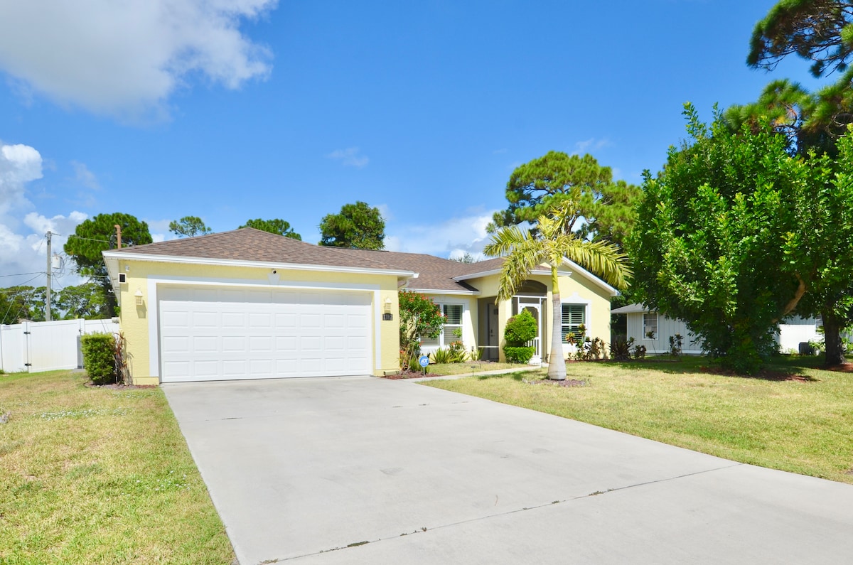Newly renovated, complete and private home equipped with all essentials for your stay! Come and relax with the whole family at this peaceful home and explore the many beauties of Fort Piece, FL! This home is located near the heart of historic downtown Fort Pierce offering activities such as shopping, dining, fishing, farmers market, and entertainment. The house is nestled in a safe neighborhood 6 mins from the Marina and 8 min from the beach. Garage and drive way parking is available to guests.
