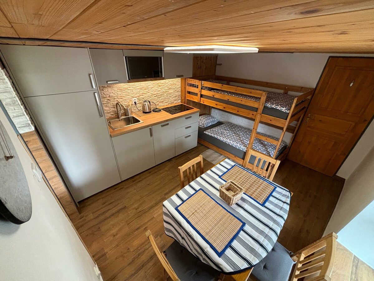 We tried to preserve the genius loci of the old days of our grandmothers. The house is without a bathroom, so like the old days, you can heat the water on the stove and wash it nicely eco-friendly in the avalanche. Yes, you'll heat up in two pebbles that gently heat the rooms. Don't worry, we've chipped the wood for you. Rotate the water from the outdoor faucet and jump into the backyard for a dry toilet. Don't wait for wifi. Wait for the museum.