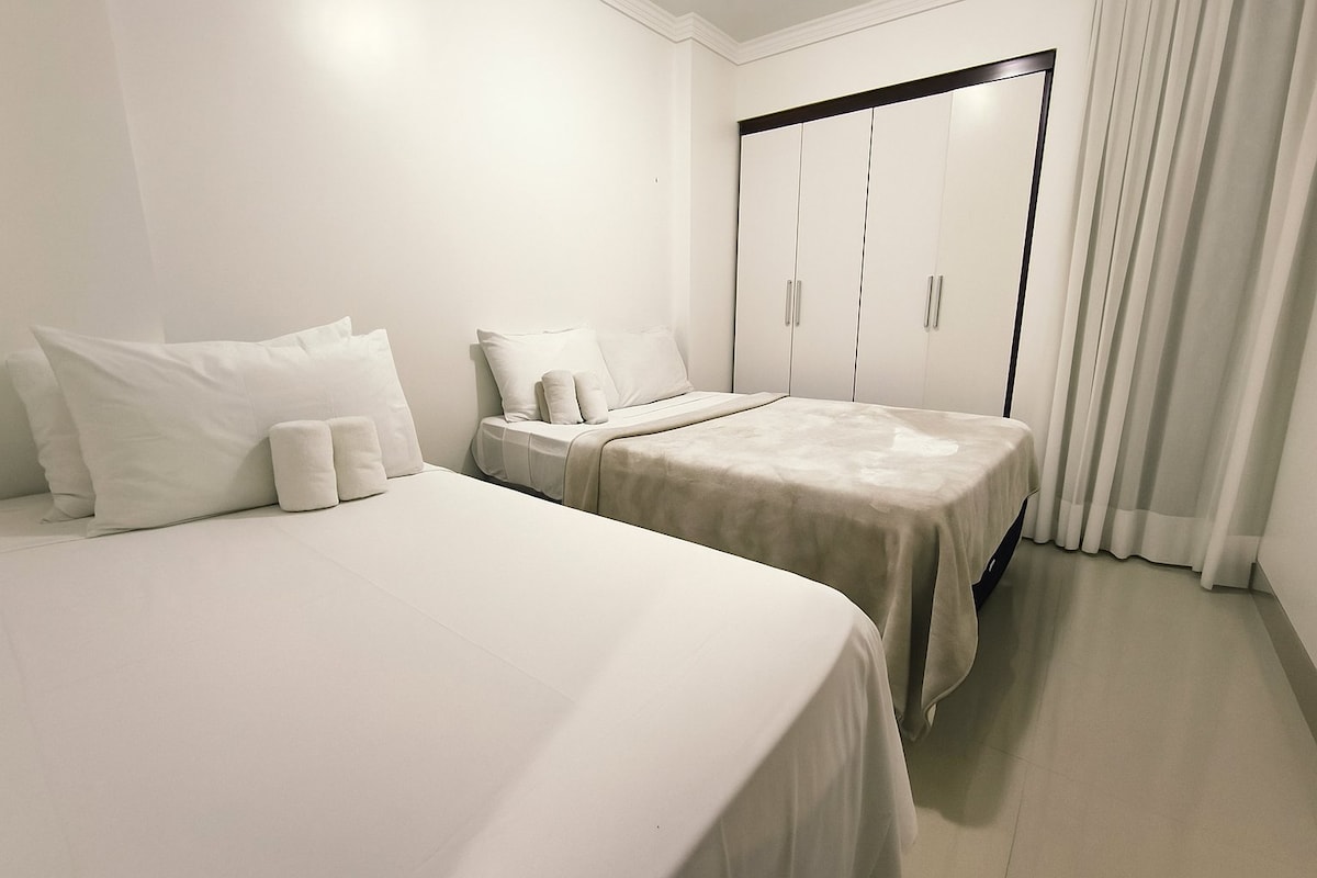 Enjoy one of the best cities in Brazil in a comfortable, quiet and spacious environment. 800 m from the beautiful Manaira beach, 109 m². 4 bedrooms, 5 beds (4 double and 1 single), all with split air conditioning, large living room with 2 areas, table with 6 chairs, 2 sofas, 43" 4K TV, full kitchen, laundry area with washer and iron. Condominium with pool and barbecue available. Garage for 2 vehicles. Wi-Fi. Near supermarkets, restaurants and bakeries. Up to 12 people. Family friendly.
