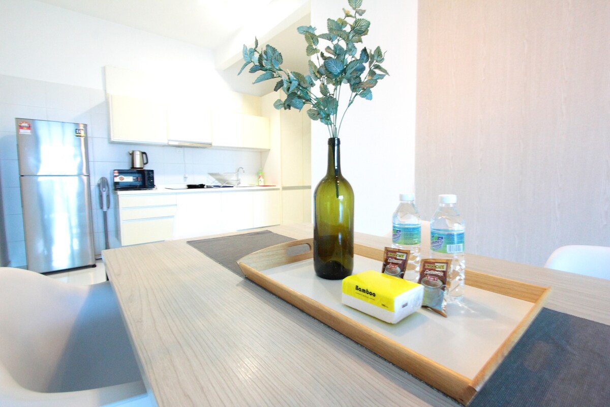 (1+1 BR & 1 bathroom) Contemporary modern and cozy condo in the heart of JB city centre. Suitable for 4pax family, friends and business group. **5mins to CIQ, City Square, KSL, Pelangi, and Larkin **8mins to Mid Valley Southkey, Larkin Sentral and Sentosa **15 mins drive to Paradigm mall, Sutera, Skudai and Mount Austin ✔ 4K SmartTV ✔ High Speed Wi-Fi, working tables with extension plug ✔ Washer ✔ Airconds in every rooms. ✔ Atari console, Mahjong, and Board games. ✔ FREE parking for 1 car