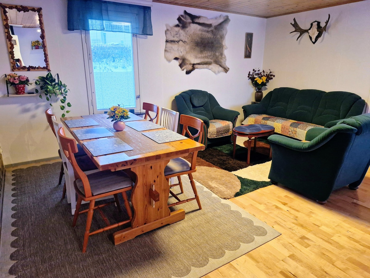Cleaning and bed linen included! Villa Becca in Blåfjell is located at the top of the hill near Beccabacken with ski-in/ski-out location in Kåbdalis. Cozy apartment on the ground floor with combined kitchen/living room, two bedrooms and bathroom and sauna. Bedroom 1 Double bed (160 cm) Bedroom 2 Family bed (bunk bed 90 cm wide upstairs and 140 cm wide downstairs) Bathroom Toilet, shower, and sauna Parking spaces are just outside the house. Pets allowed No smoking