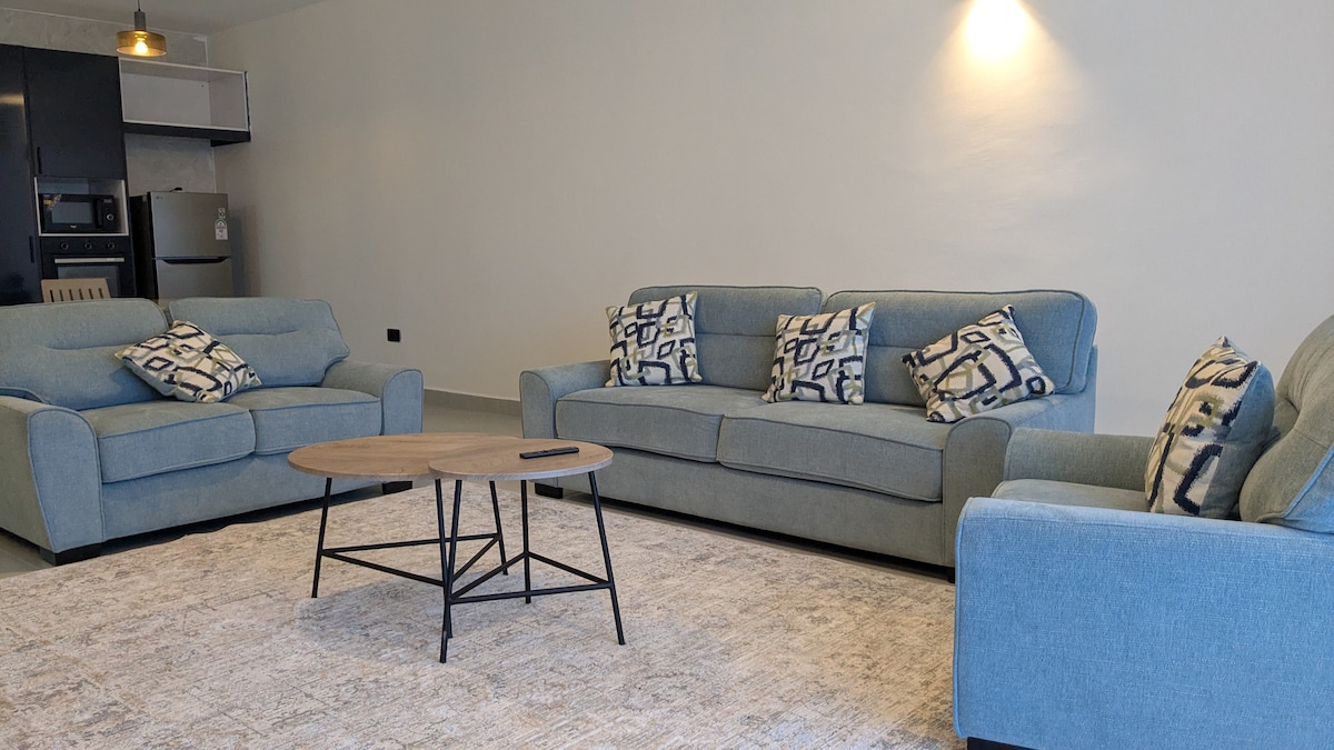 Tucked away along Kenya's breathtaking coastline, Alfajiri Haven is a Swahili inspired sanctuary designed for serene escapes and unforgettable stays. Just a short stroll from the beach and neighboring high end resorts like Sarova Whitesands and Travelers Beach Hotel, the apartment complex features a pool, lush gardens, lifts, expansive parking, excellent security and a back up generator. The apartment has a beautifully curated Swahili inspired interior.