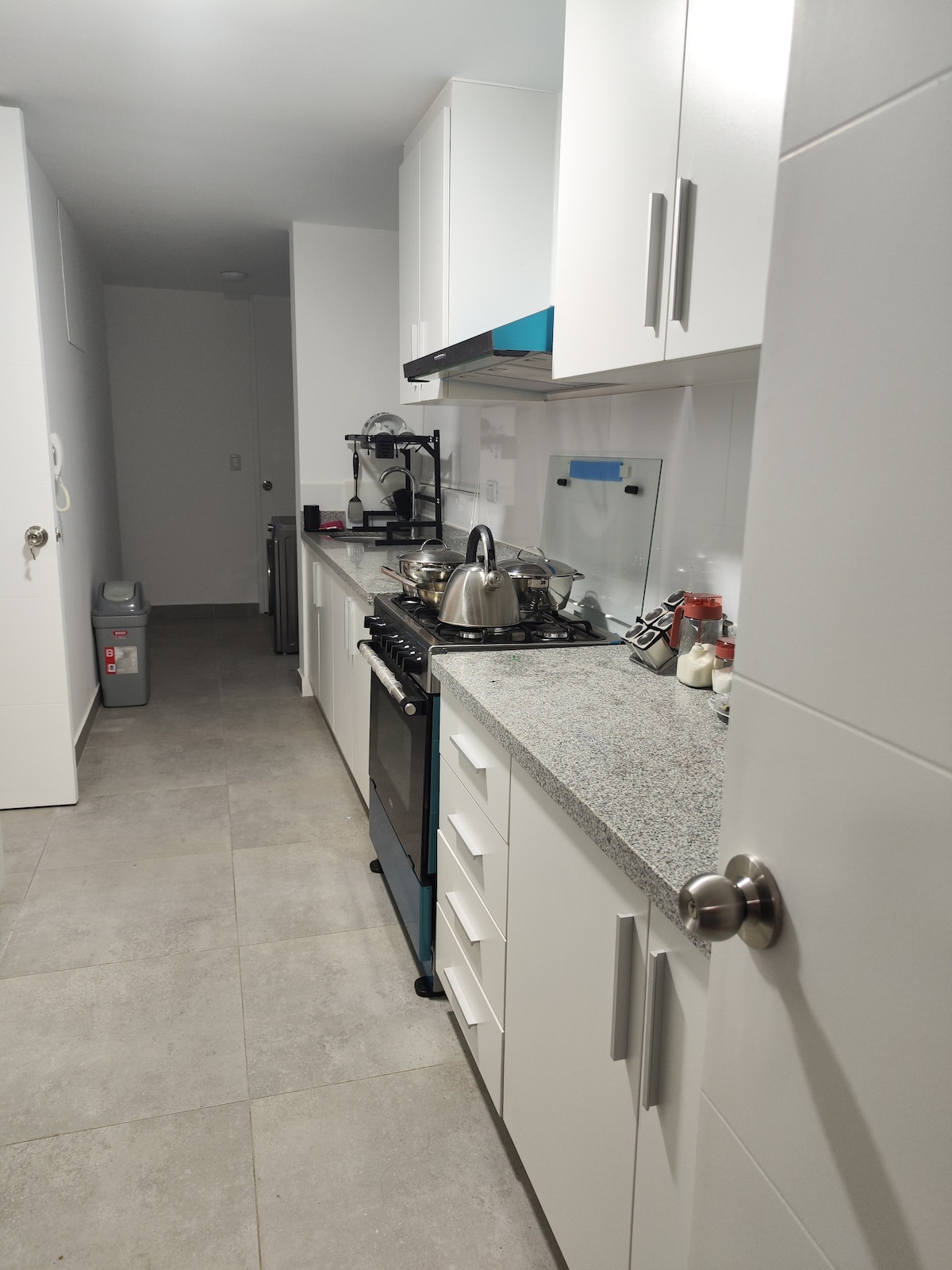 Modern and cozy apartment on the 8th floor, with a nice view from the balcony. Ideal for up to 3 people, with 1 bedroom, open kitchen, mini living room, bathroom and laundry. Fully equipped for a carefree stay. Located in the center, close to clinics, universities and main avenues. The building has elevators, a gym, and common areas. Your perfect base for exploring the white city!