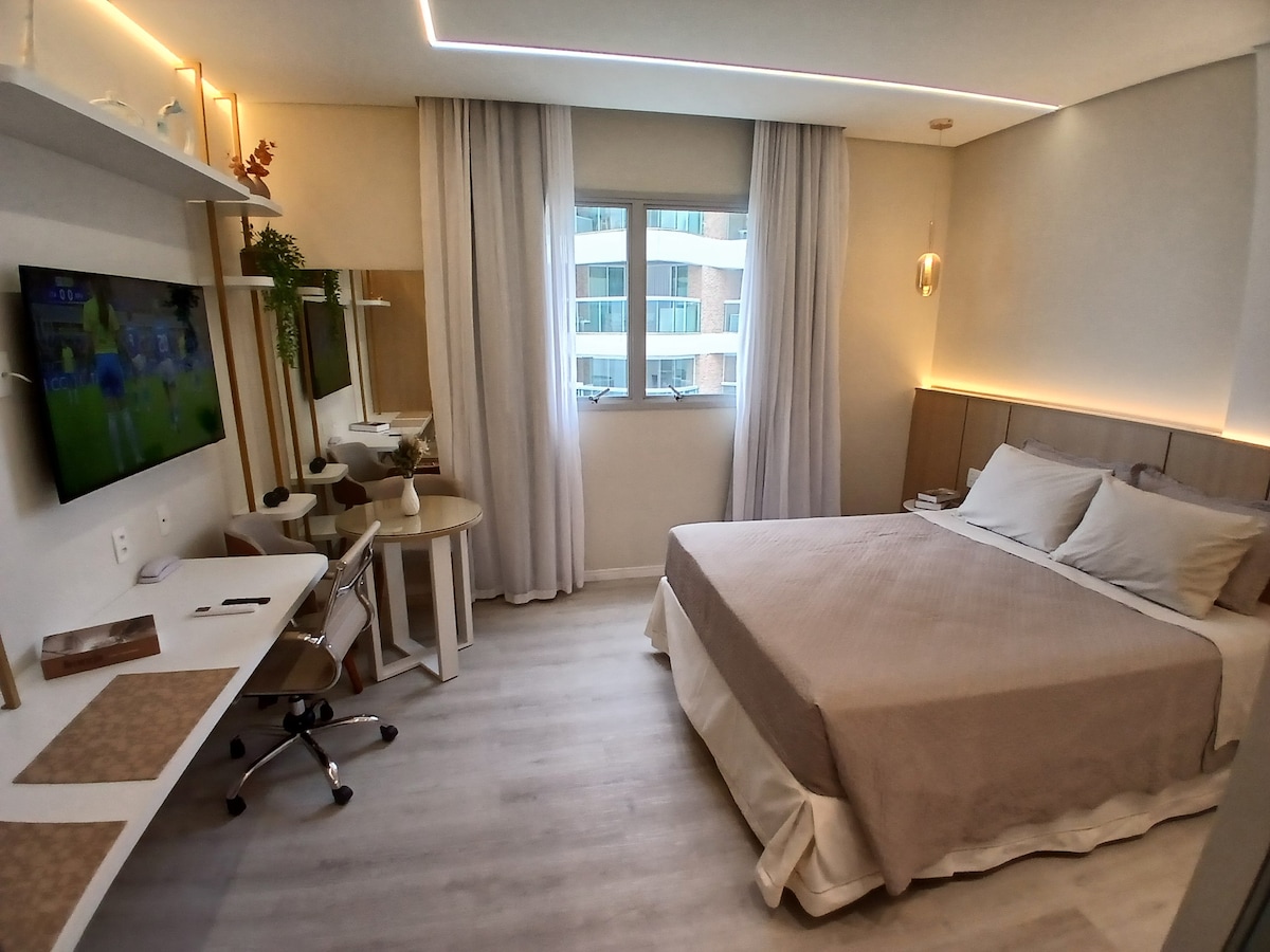 This 55m² apartment is ideal for couples and executives on business trips. It has everything you'd expect from an apartment: practicality and technology. For those coming to spend New Year's Eve in Santos, you can enjoy the festivities without even leaving the building. From the pool area, you can enjoy the sea view, the fireworks, and the city's festive atmosphere without having to deal with traffic, crowds, or a tiring commute after the fireworks.