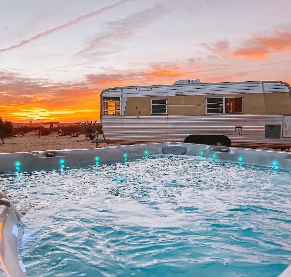 Honeycomb Hideaway is a romantic and relaxing getaway for couples and solo travelers looking to reconnect away from the hustle and bustle of the day to day. HH sits on phenomenal acreage with hiking trails just minutes from Joshua Tree National Park and the up and coming downtown of 29 Palms. The cabin offers all the modern convinces including a fully loaded kitchen, cozy king sized bed, and even a cowboy pool for cooling off in. Fall in love with Honeycomb Hideaway by booking today!