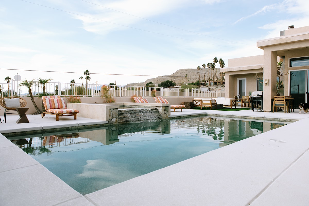 Welcome to Daybreak, a luxury desert escape with high-end amenities and a designer pool just minutes from Joshua Tree National Park. Unwind in the resort-style backyard featuring a sparkling pool, spa, and a fully equipped workout garage with an infrared dry sauna. Packed with games, fitness options, outdoor lounging areas, and relaxing spaces for all ages, this spotless modern retreat delivers comfort, style, and a truly elevated desert getaway beyond the typical dusty rental.