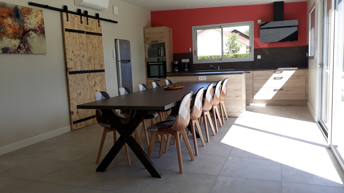 Whether you are with family, friends or on business trips (to reduce your costs). We welcome you to our renovated farmhouse, located in a quiet cul-de-sac with no overlooking neighbours. Two-bedroom apartment with a living room equipped with a real snooker table, bar, darts, board games, bookcase and reading corner. Outside, there is an unheated swimming pool open from April to September, a pétanque court and a table tennis table. There is also a terrace on the pool side and another on the courtyard side. Secure parking.