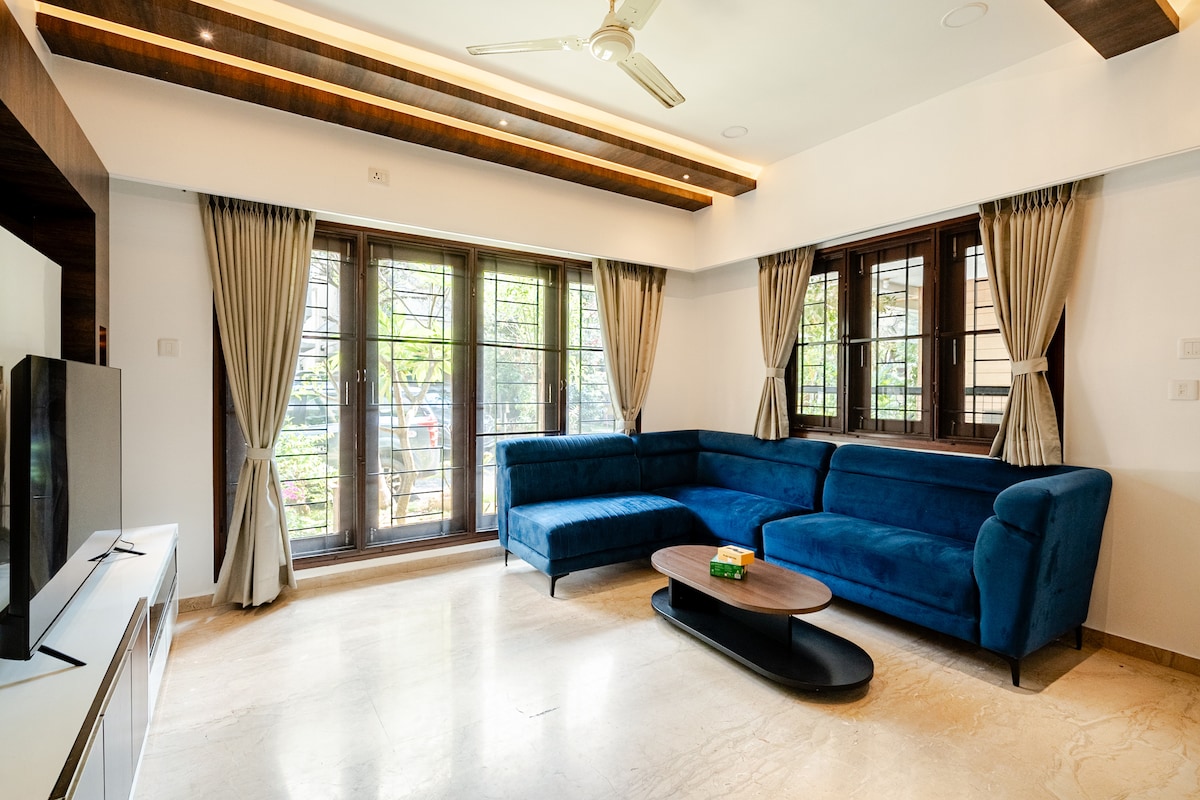 Experience a homely stay in this fully furnished, spacious 1BHK BnB set in a very posh and peaceful neighborhood. Surrounded by greenery, the home is bright, airy, and well-ventilated with modern amenities and elegant interiors. Just a 2-minute walk from the main market street and popular cafés, it offers the perfect balance of serenity and city life. Located on the 1st floor with easy access, ideal for leisure or business stays.