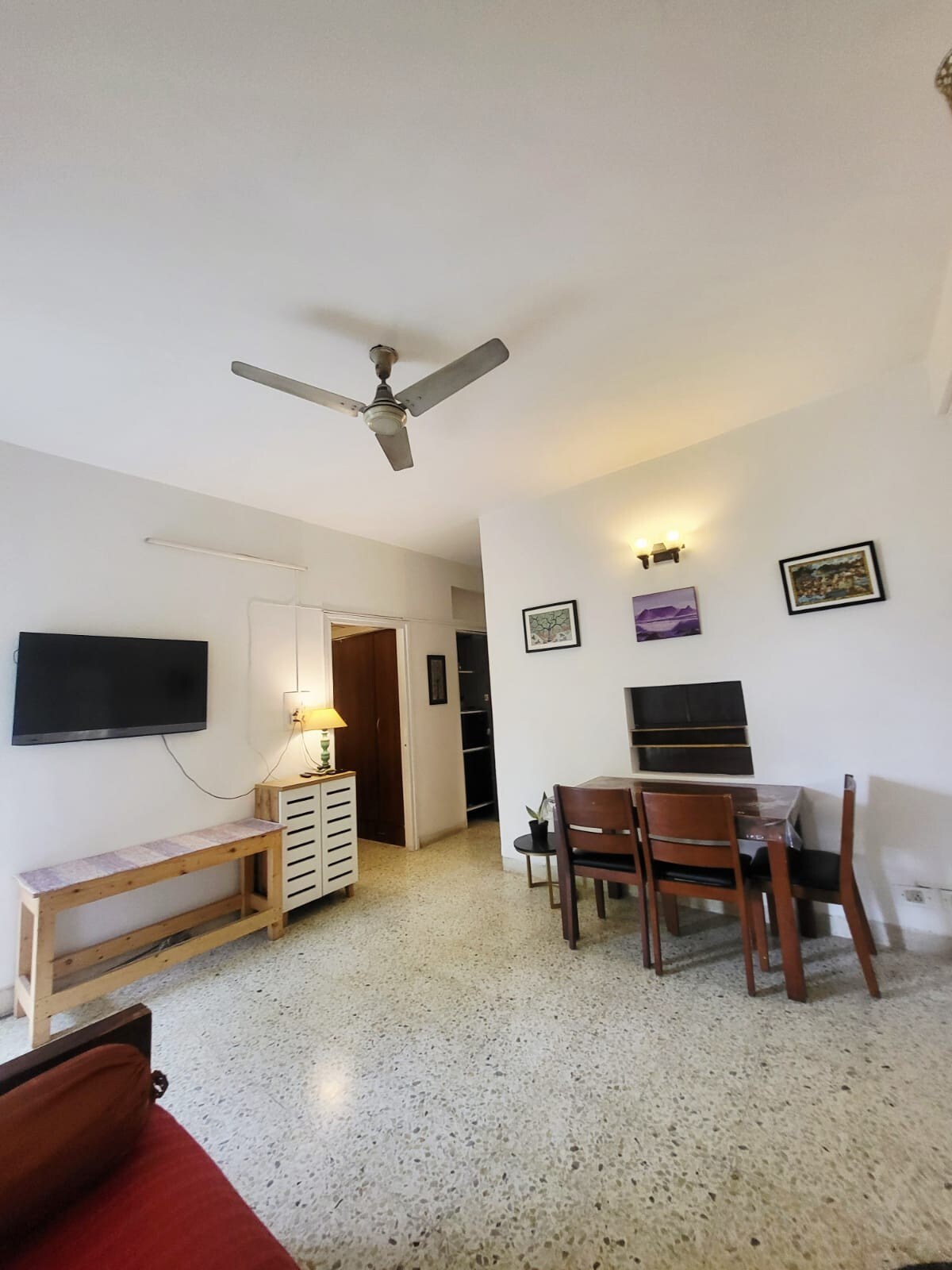 Welcome to our newly renovated, spacious 1-BHK flat, ideal for couples and families seeking comfort and convenience. The bedroom boasts a queen bed and soft orthopedic mattress for a restful night's sleep. Relax in the large living room with a 43-inch Smart TV, lightning-fast WiFi and dedicated workspace. Comes with a super clean bathroom stocked with essentials. The fully equipped kitchen includes basic ingredients, high-quality appliances, and crockery for your culinary adventures.
