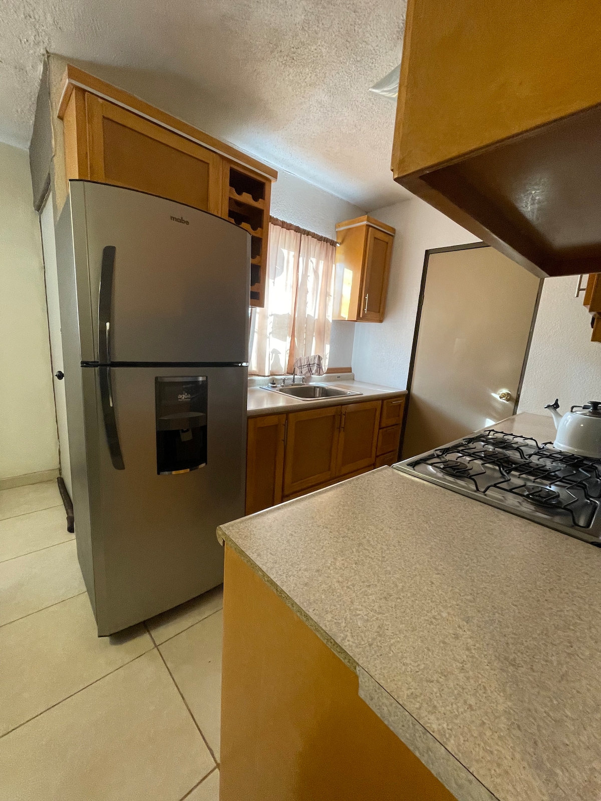 Departamento en zona muy centrica y segura de la ciudad. Cuenta con espacio para dos carros con cocheras seguras. Un balcon para lectura, beber algo y/o fumar si asi lo deceas. Tiene una cocina completa con refrigerador, microondas, estufa, sartenes y platos también un desayunador para 4 personas. El baño cuenta con tina grande (caben dos personas) y doble regadera. Un closet muy amplio en donde te sobrara el espacio. WIFI incluido.