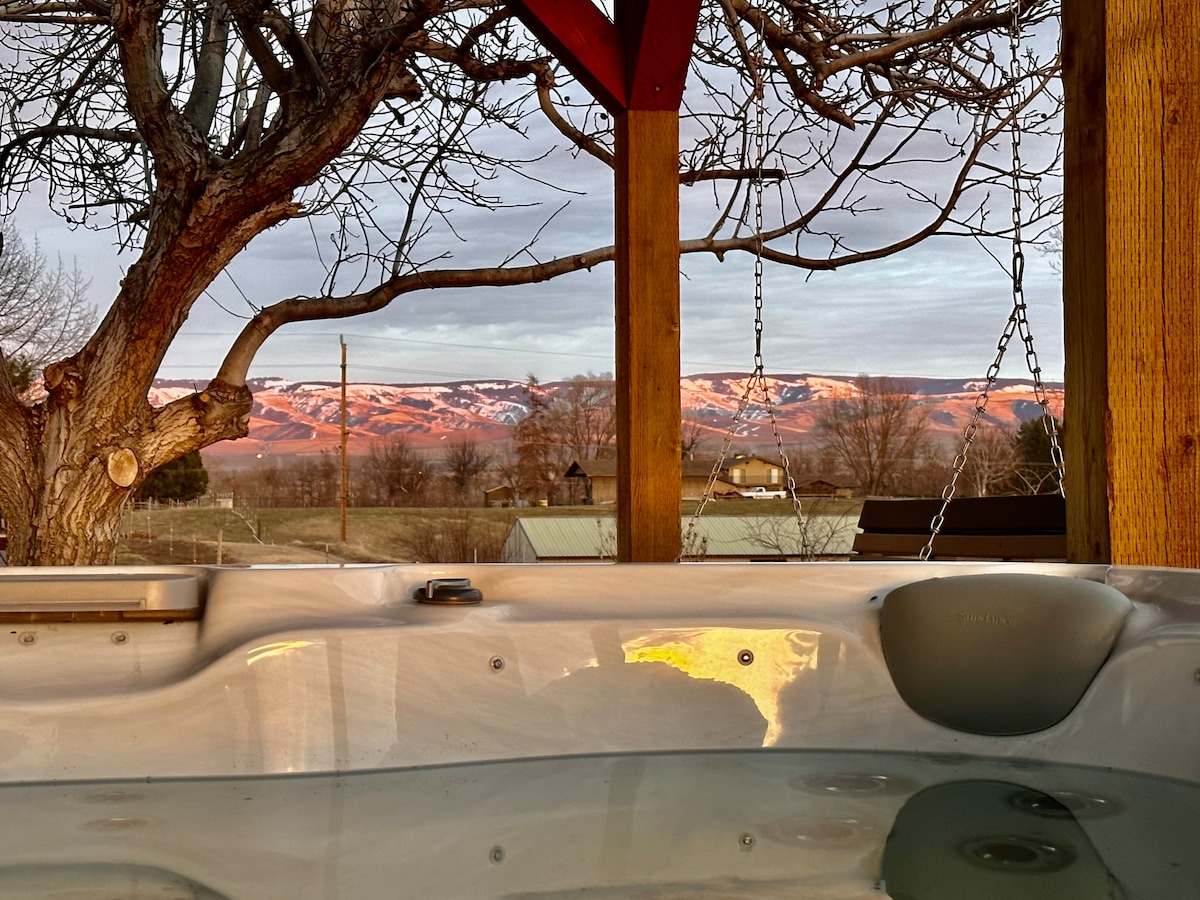 Escape for a private, relaxing stay at this unique tiny home in Walla Walla. Close to town, excellent restaurants, and beautiful estate wineries nearby. We are in the county on acreage, in an upscale neighborhood, with mountain views. Large yard, outdoor kitchen, fire pit, sit in the hot tub and watch the stars. Activities: biking, hiking, skiing, art walks, and as always, live activities in town. A master suite is also available to rent, next to the tiny home, if you have friends to join you.