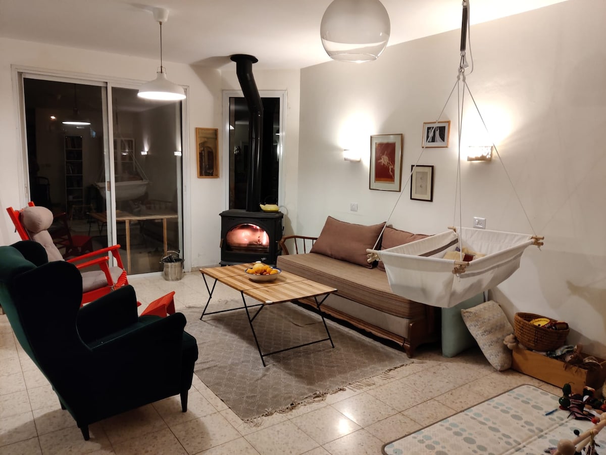 A spacious place suitable for families, with lots of room to spend time together. The house is built on two floors with a total of 160 square meters. The house has three bedrooms + an open sleeping space (everyone's favorite...), a protected space, a fully equipped and pleasant kitchen, a barbecue area, a fun gazebo in the summer, direct access to Beit Zeit Lake (2 minutes walk). The house borders a wadi and is full of nature all around, so you can take a walk straight from the house. There's a nice chicken coop, a wood-burning stove in the winter, a large, spacious garden full of fruit trees. By car, the center of Jerusalem can be reached in 10-15 minutes without traffic jams. There is public transportation every hour.