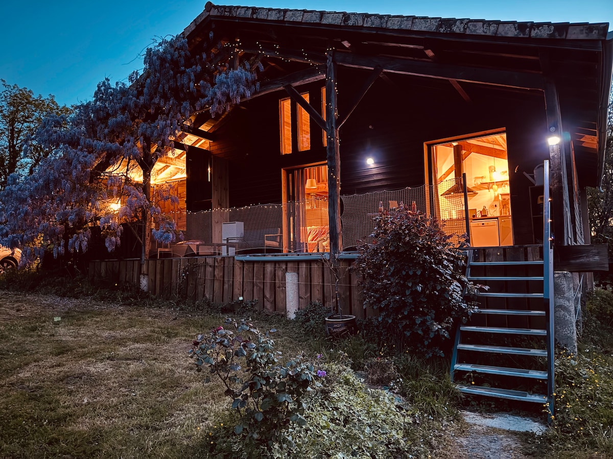 Outside, the deep black of the burnt wood cladding, inside, light materials enhanced here and there by touches of indigo. KOKO is very comfortable, heated and air-conditioned. The central living area opens onto the garden and landscape, with a fully-equipped kitchen, bathroom with walk-in shower and separate bedroom with queen-size bed (160 cm). Terrace, private garden with barbecue and access to the laundry room (washing machine and tumble dryer). Nordic bath (€50) and electric bike hire.