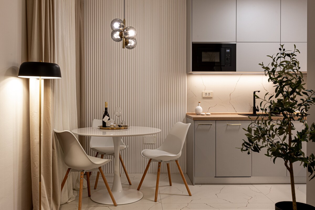 V Luxury Residence Metlika je velika spalnica, dnevna soba z wellnessom in kuhinjo ter kopalnica. Spalnica je opremljena za dve osebi in je od osrednjega dela ločena z vrati. Kuhinja je opremljena s sodobno in vso potrebno opremo za kuhanje. V osrednjem delu je jedilna miza, usnjen raztegljiv kavč, na katerem lahko spita dve osebi in TV s Playstation 5. V wellnessu imamo finsko in infrardečo savno ter jacuzzi s TV. Kopalnica je ločena z vrati. Zunaj apartmaja je terasa in brezplačno parkirišče.
