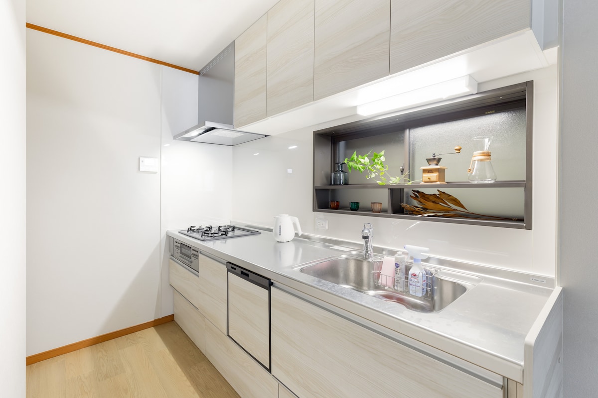 This designer room is a 2LDK measuring 51.3㎡. It's a 7-minute walk to Osaka Metro Nagahoribashi Station and just 1 minute by train to Shinsaibashi Station. From Nagahoribashi Station, you can reach Umeda Station in 10 minutes and Kansai Airport in 50 minutes. ◆ Features Located in the heart of Osaka Minami Supermarket and convenience store within a 5-minute walk Stress-free self-check-in system Available in Japanese, English, and Chinese High-speed Wi-Fi available