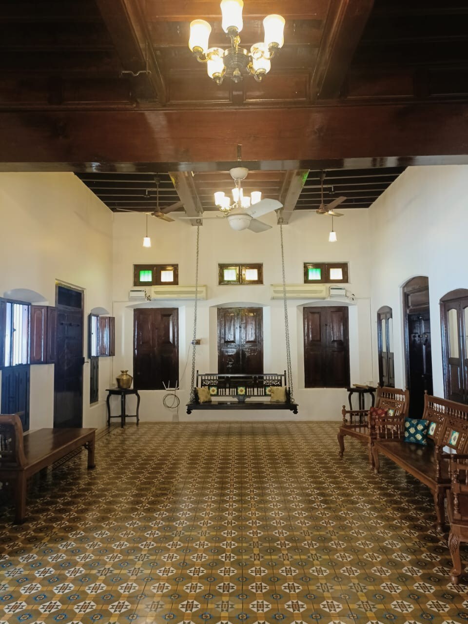 Escape to a serene countryside retreat where tradition meets comfort. This charming six-bedroom stay in Dhalaivaipuram offers an authentic rustic atmosphere, surrounded by the quiet beauty of village life. Each of the six spacious bedrooms is equipped with air-conditioning, ensuring a cool and comfortable stay even in the warmest seasons. The interiors reflect simplicity and heritage—wooden touches, traditional décor, and cozy lighting that create an inviting, homely feel.