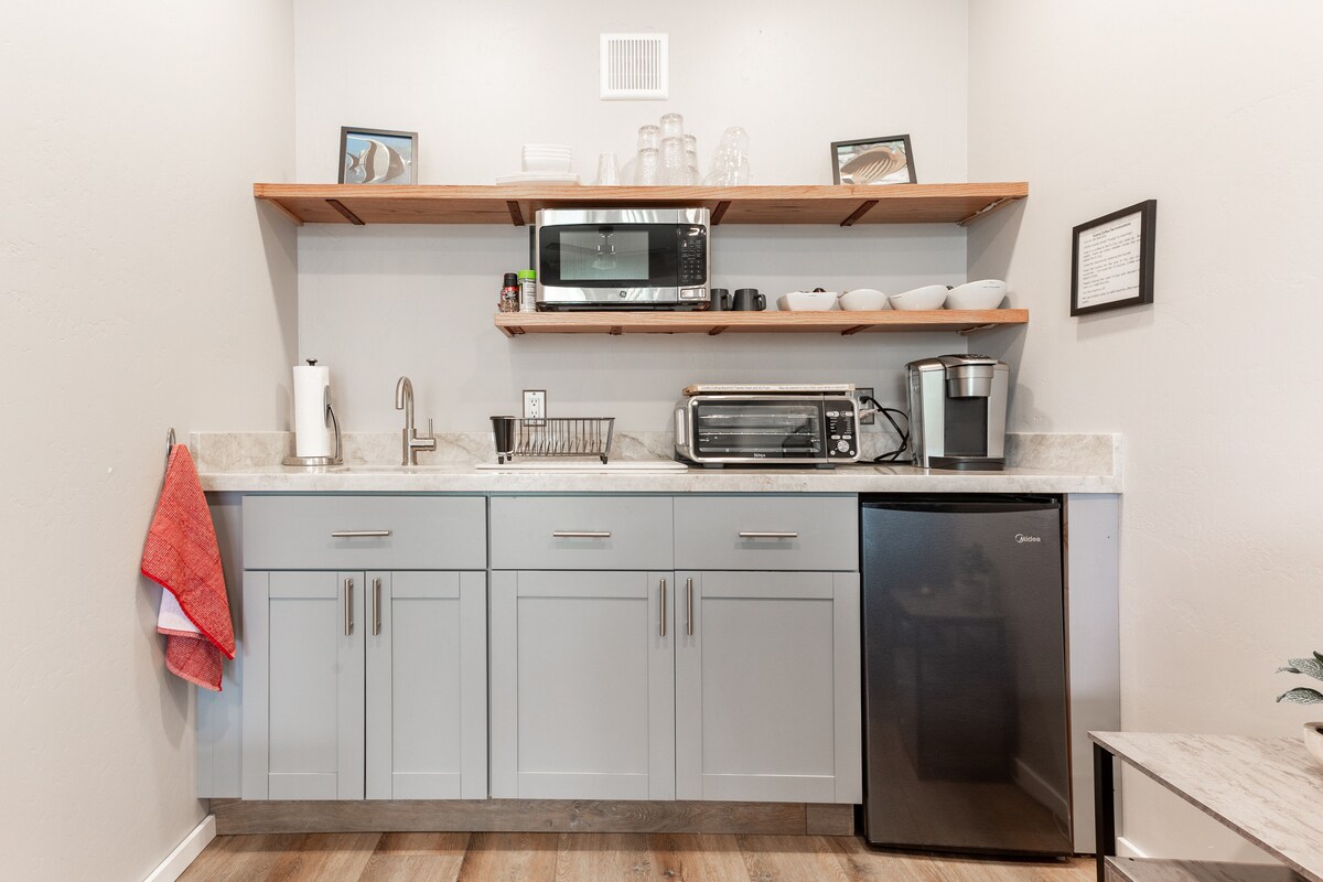Designed by an architectural drafter and his wife who paid attention to the details, welcome to Good Vibes Ohana. A tiny studio made with love and a touch of modern aloha. The studio is at a cool 1,400 ft. elevation & has a partial ocean view from the patio. Driving distance from the Kona airport (KOA) & downtown Kailua-Kona is under 15 minutes. Matsuyama Food Mart & Gas is less than 5 minutes away. GE, TA, TAT tax Included.