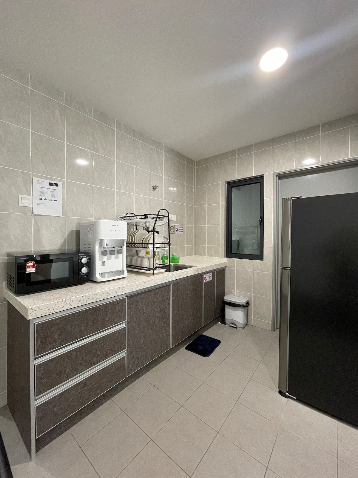 suitable for long stay (have water filter for drinking water) Location: EkoCheras Residence -above EkoCheras mall -15 mins to KL -link bridge to MRT -6 stations to Pavilion KL -We dont have karaoke system, but we add on microwave.