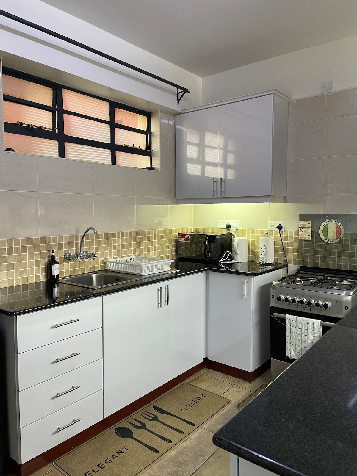 🏡 Welcome to your stylish 1-bedroom executive apartment in the heart of Lavington — perfect for couples 💑, business travelers 💼, or weekend getaways 🌇! ✨ Enjoy modern comfort with a spacious open-plan living area 🛋️, a fully equipped kitchen 🍳, plus a washer & dryer for your convenience 👕🧺, and reliable electricity backup ⚡. 📺 Relax with entertainment on a 75” Smart TV (Netflix 🎬, YouTube Premium ▶️, Free IPTV 📡) or unwind with the PlayStation 4 🎮 after a long day.
