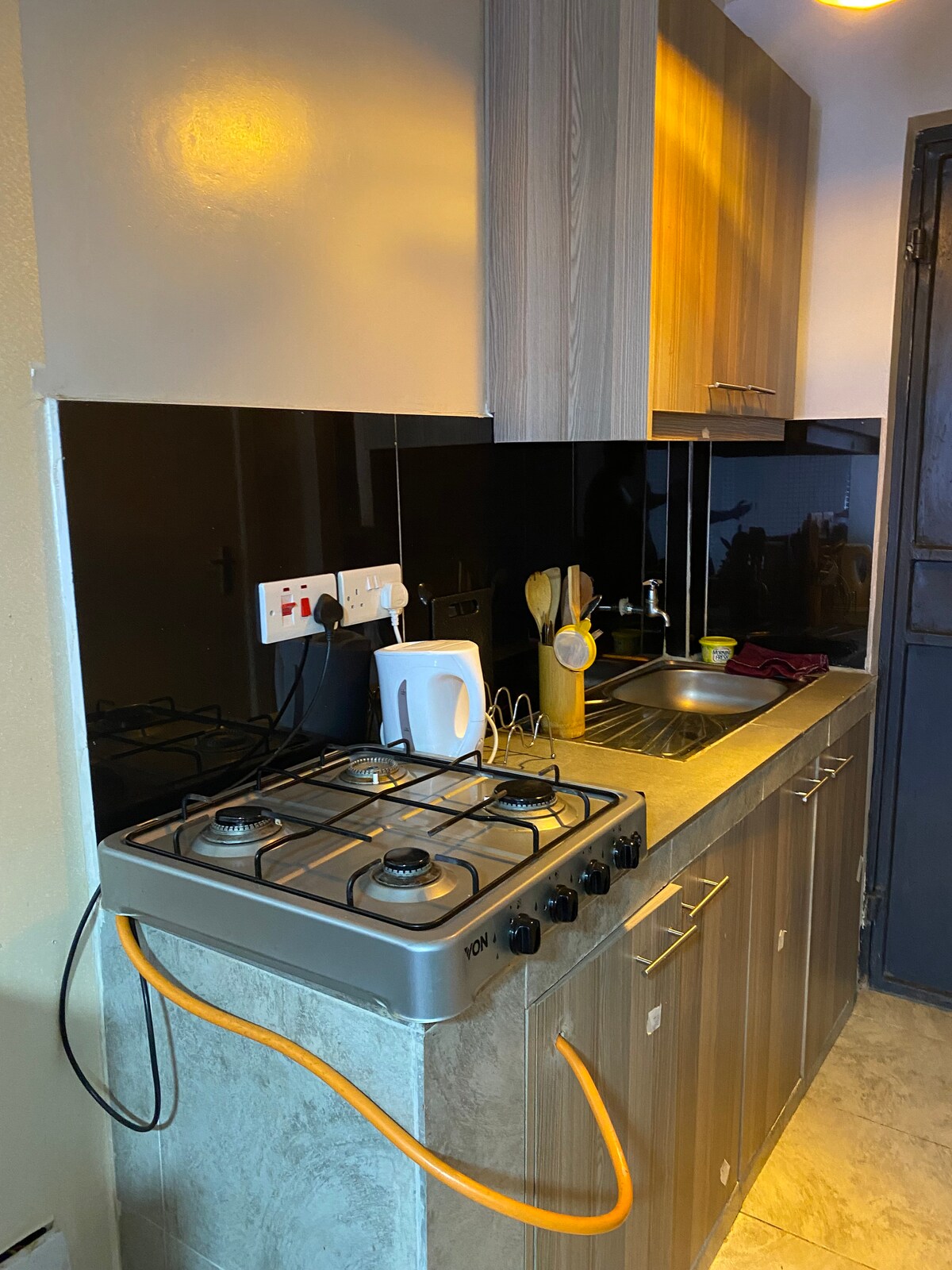 The studio suites feature modern décor, comfortable, soft spring mattress and several amenities for an enjoyable stay. Guests of our studio suites enjoy free fast Wi-Fi internet access; smart TV; you can stream Netflix, youtube and other interesting internet channels. A well furnished kitchenette, with fridge, cooker, microwave, electric kettle and all necessary cookware and utensils.There is also a study/work desk, ironbox, elevators.
