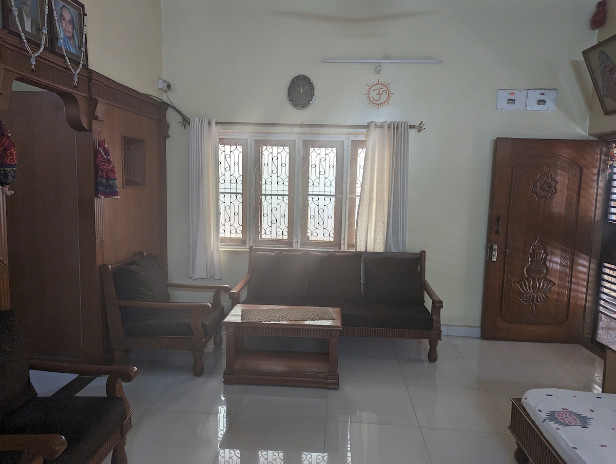 Spacious 3BHK apartment on the 2nd floor with AC in all bedrooms. Two bedrooms have attached Western bathrooms; one common bathroom has an Indian toilet. All bathrooms include 10L geysers. Spacious living room with WiFi, and TV. Kitchen with basic utensils, RO, and fridge. Beyond 6 guests, for extra guests extra bedding available. Pet-friendly. Towels & toiletries provided. Basic power backup, lift (temporary backup), and safe street parking available. All house rules should be followed.