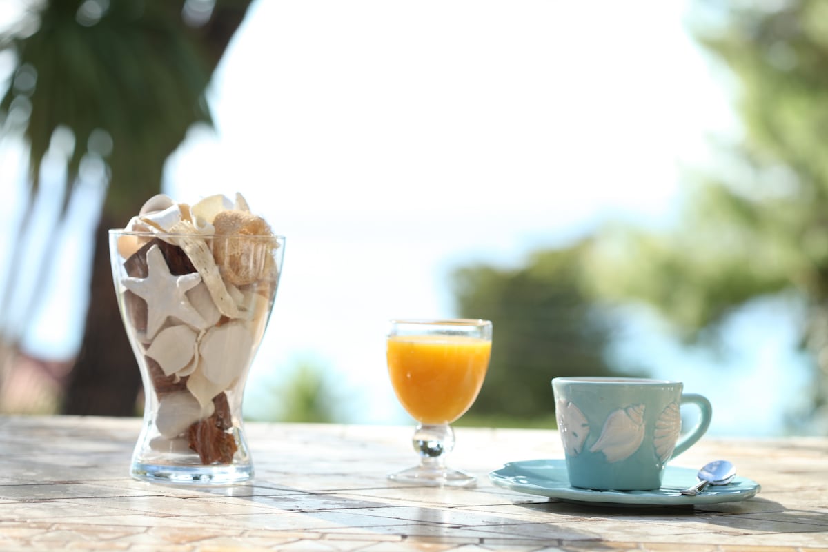 You wake up, the sun is rising behind mount Athos. You enjoy a cup of coffee, while the dolphins jump on the horizon. You walk to the beach and the only thing you can hear is the sea. You cook outside, watching the boats passing by and the seagulls chasing the fish. Now, it's time for drawings and board games. Finally, you have a glass of wine, waiting for the moon to rise behind the hills.