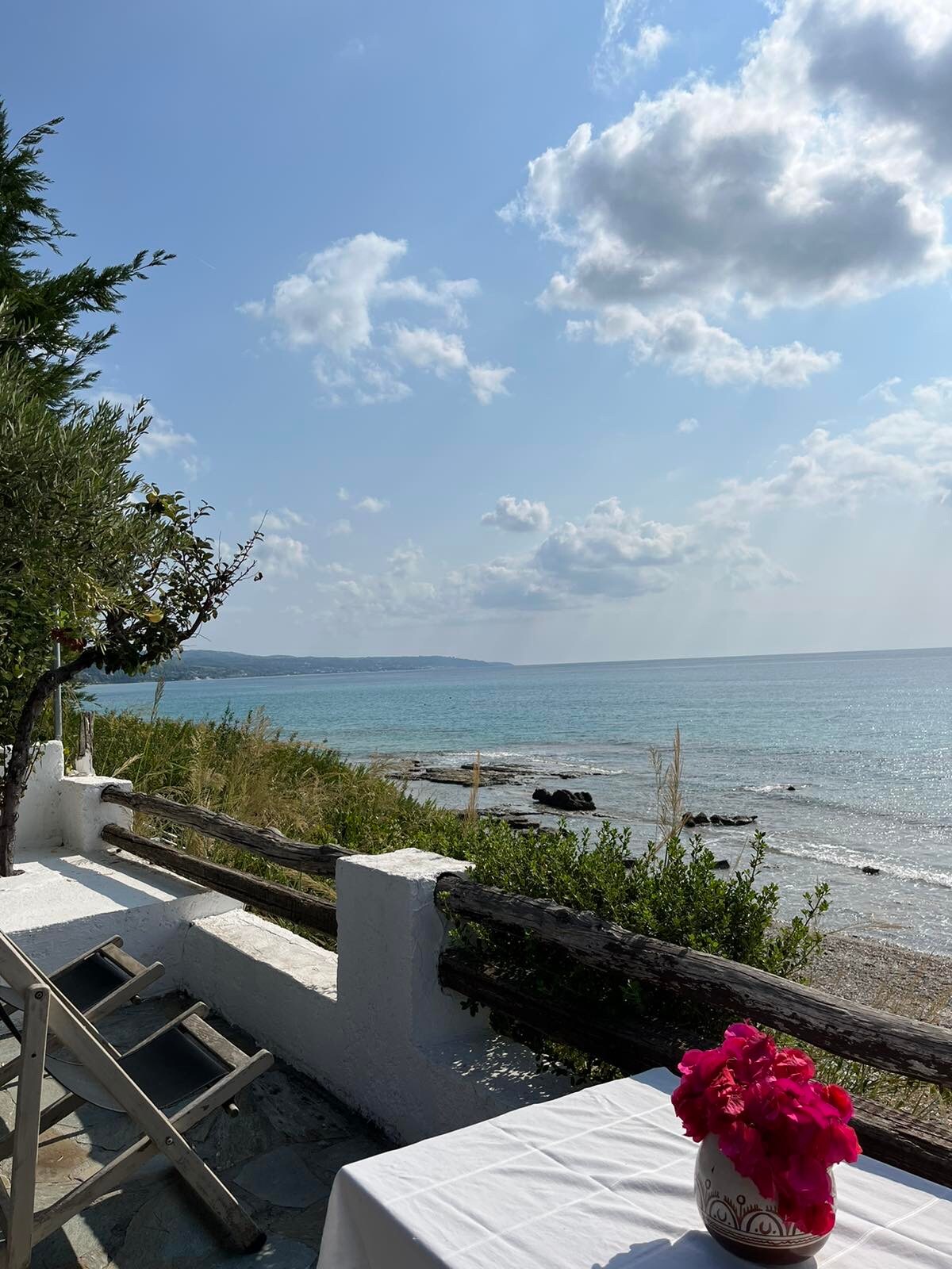 In the most beautiful part of Kassandra, right by the sea, protected from the crowds of mass tourism, a small, family complex of six residences, on the largest estate in the area, it offers privacy and plenty of space for play. In front of you is only the endless sea! The view calms and relaxes!! It is no coincidence that when we host our friends, it is difficult to get them off the veranda at night... they tell us that they are in paradise!-) it is your turn to live the experience!!