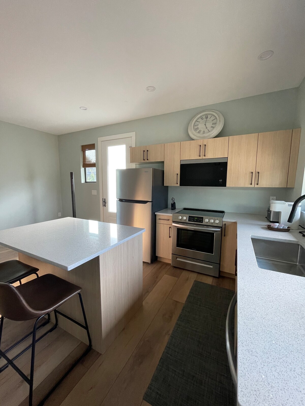Bright & spacious ground floor suite with private entrance. Perfect for couples, friends or families. A separate bedroom with queen sized bed & full sized pullout in the living area. Private bathroom with great shower space plus washer/dryer. The kitchen area is well equipped for a comfortable stay; full size fridge, cooking amenities, small appliances. BBQ available, access to a large garden area & patio seating. Wineries, restaurants, beaches, hiking/biking all nearby. Licensed: H661215462