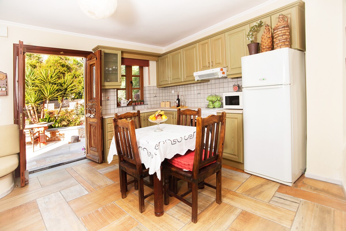 Place of wonderful aesthetic in Kantouni, fully furnished and equiped. Guests have access to the tree garden with fruit to collect. The can also enjoy relaxing moments at the beautiful yard of the house. The house is located very close to Kantouni beach (3 minutes on foot), popular bars, restaurants and a supermarket. An ideal place for those who are looking for quality vacation time.