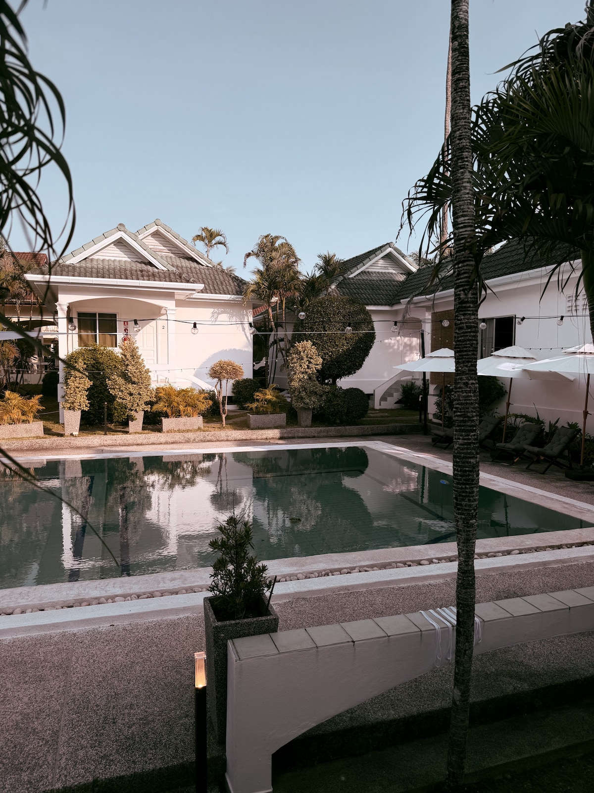 👫 Alan & Nuch invite you to our home; a tranquil villa nestled amidst lush tropical garden surrounding our large private swimming pool. 🏡 Our sole separate guesthouse is tastefully decorated in traditional Thai style, equipped with luxurious amenities for a comfortable stay, with no other guests on the property but us. 📌 Our location is safe and quiet yet conveniently close to beaches, restaurants, bars, shops, attractions and more. ⚠️ Please read all sections for important details !!