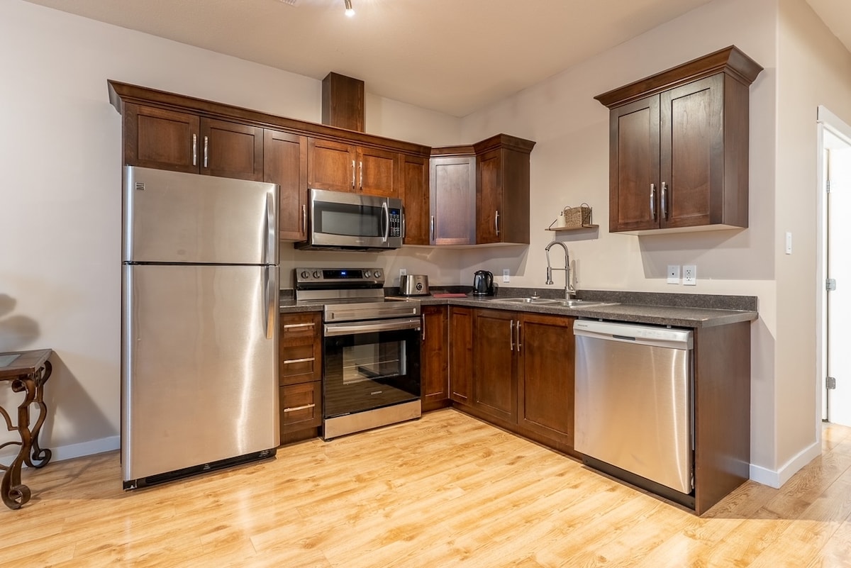 Our home is centrally located in a quiet neighbourhood that is a 20 min walk to Royal Inland hospital, 4 min walk to the city bus stop, and a 6 min drive to downtown for groceries or shopping. If you are needing a place to stay for a tournament, wedding , an early apt at the hospital or just a place to rest our home may be right for you. Our 1 bedroom apartment is a bright, cozy and open concept.The kitchen offers 2 induction burners/ microwave/air fryer . Registration # H962633554