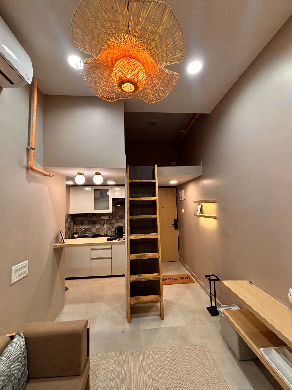 Tucked within a quiet residential enclave near Sanjay Gandhi National Park, this thoughtfully curated studio in Borivali East offers a calm, comfortable retreat. With the metro a short walk away and easy access to Borivali Railway Station, beaches, and the Global Vipassana Pagoda, the location is both well-connected and peaceful. Ideal for couples and business travellers, the studio includes WiFi, air conditioning, a smart TV, and a functional modular kitchenette for a seamless stay.