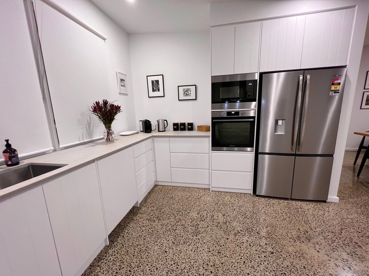 A welcoming 3 bedroom Villa situated in the heart of Kingscote. 200m from the foreshore, close to the jetty and a short stroll to shops & restaurants making it the perfect base for your Kangaroo Island experience. A contemporary styled home with all of the comforts of your own home. The rear yard contains a 100yr old Mulberry Tree that will delight you and your companions. The yard is fully secured for pets. We look forward to you becoming our guests. Includes guest bikes and unlimited WIFI