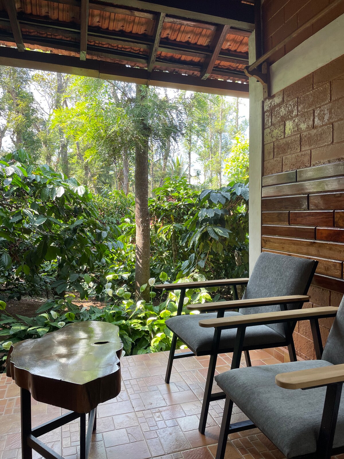 A peaceful 3-bedroom bungalow tucked away in the heart of our lush coffee plantation in Coorg—perfect for a group of friends or a large family looking to relax, reconnect & recharge. 15 mins from town, the bungalow offers complete seclusion amidst nature. 2 bedrooms are air-conditioned. The only sounds you'll hear are the rustling leaves & chirping birds (15 varieties). Look forward to hosting you w/ home cooked food & privacy.