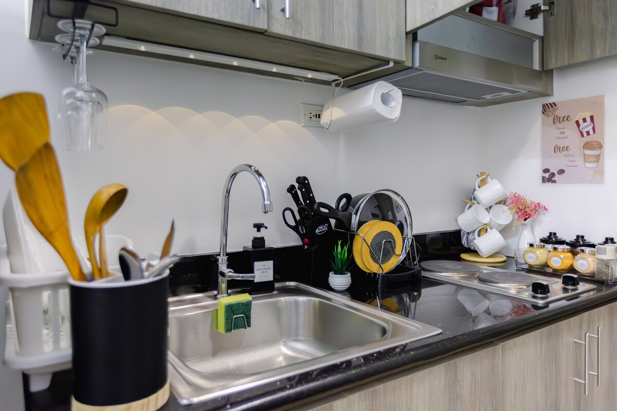 A cozy modern Scandinavian/tropical retreat nestled in the heart of the city. This is a place where you can relax, unwind and have fun with your loved ones or just by yourself. The living area is adorned with light-colored wooden floors, providing a warm and welcoming ambiance. Furnished with simple yet stylish Scandinavian/Tropical furniture. The kitchen is fully functional. Equipped with all your cooking needs. The bedroom’s minimalist design will for sure give you a restful night’s sleep.