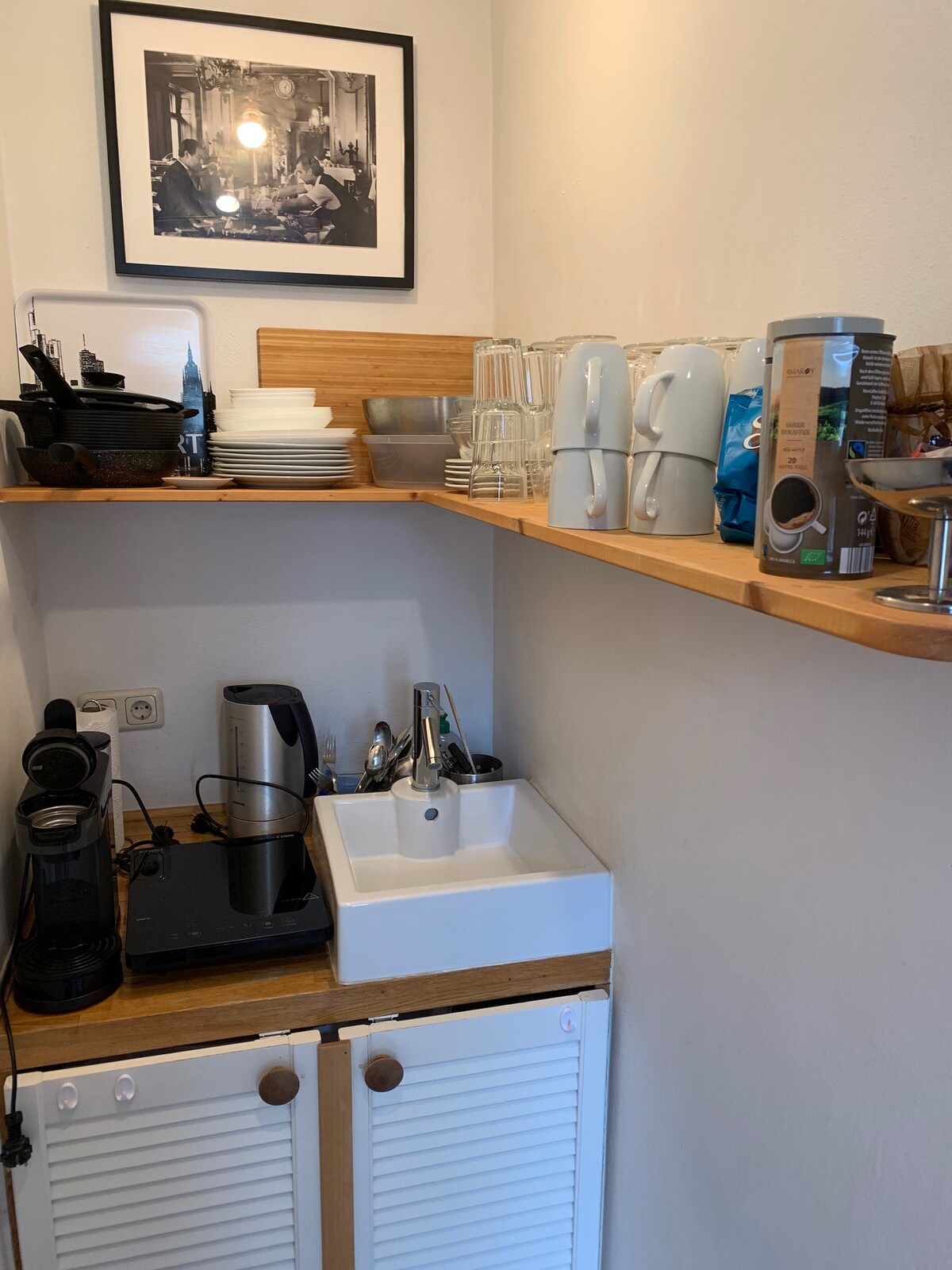 An inviting little kitchen with dining table is framed by 2 cosy rooms. In addition, a bathroom with a walk-in shower. There is a small terrace in front of the apartment. Perfect for a glass of wine when the weather is right. The apartment – located in a private residential building occupied by the owners – is in Klein-Karben, approximately 21 km from Frankfurt am Main. You can get to the city centre by bus, S-Bahn (suburban train) or car. Supermarket and bus are within walking distance.