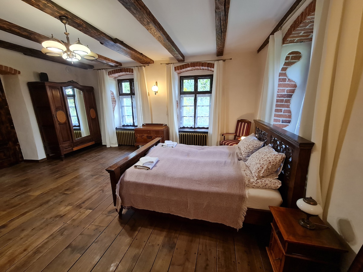 A spacious, two-room apartment with a kitchen and bathroom with a unique atmosphere is located on the first floor in a historic 300-year-old house with history. From the windows you can see the panorama of the Karkonosze Mountains and the garden. Guests also have individual access to a large corridor and balcony.