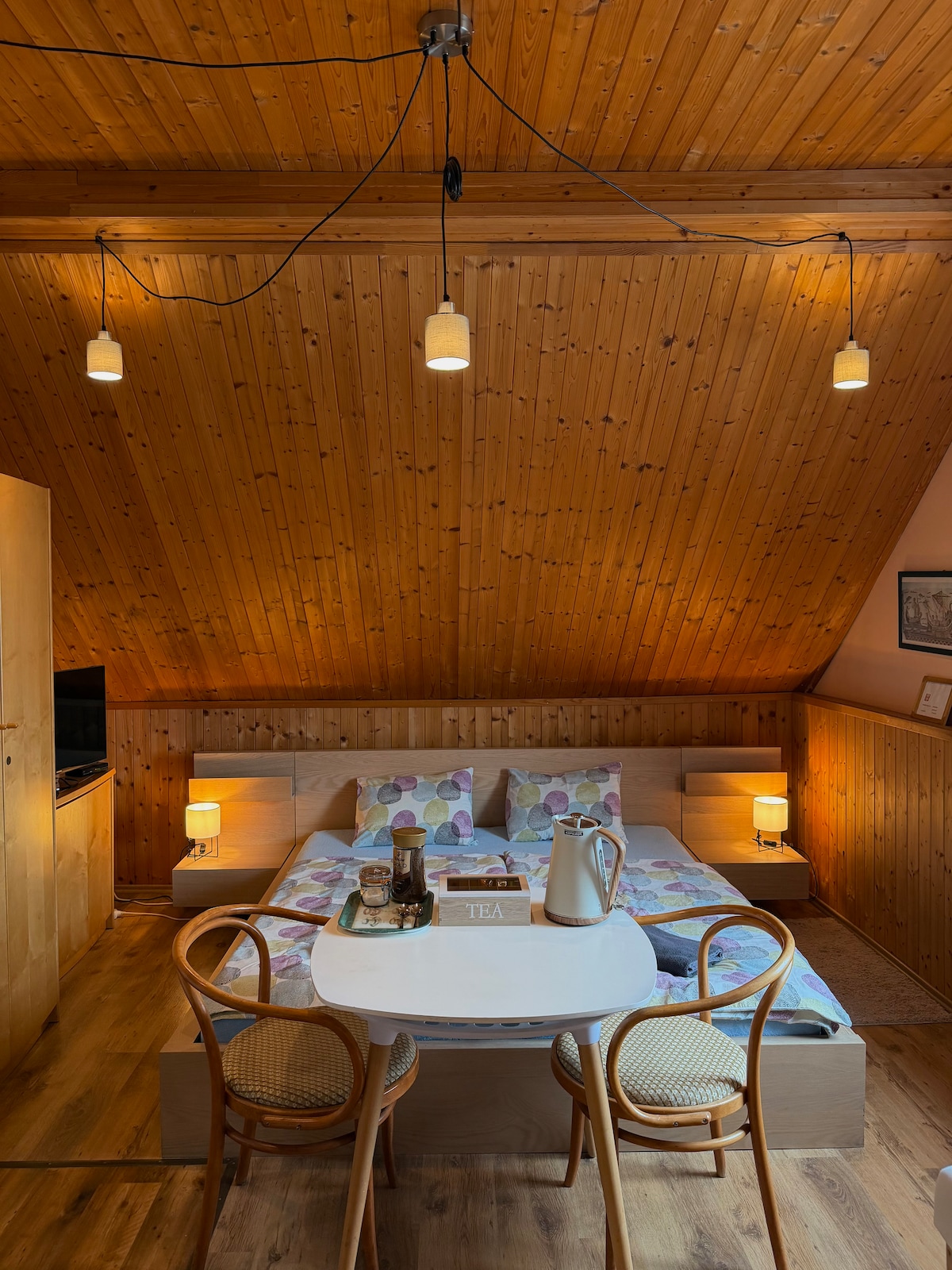 In the Ore Mountains near Karlovy Vary and Boží Dar, in a small village, I created our refuge. A sensitively renovated attic overlooking the countryside and a hot tub on the terrace (extra charge) and a home cinema. We'll be happy to lend you our place. The entire space, including the terrace, will be available to you. We will help you plan a trip and discover the beauty of the Ore Mountains. We take care of our place with love and care. We want you to feel at home here too. There's a little bit of everything here - mountains, nature and a spa town!