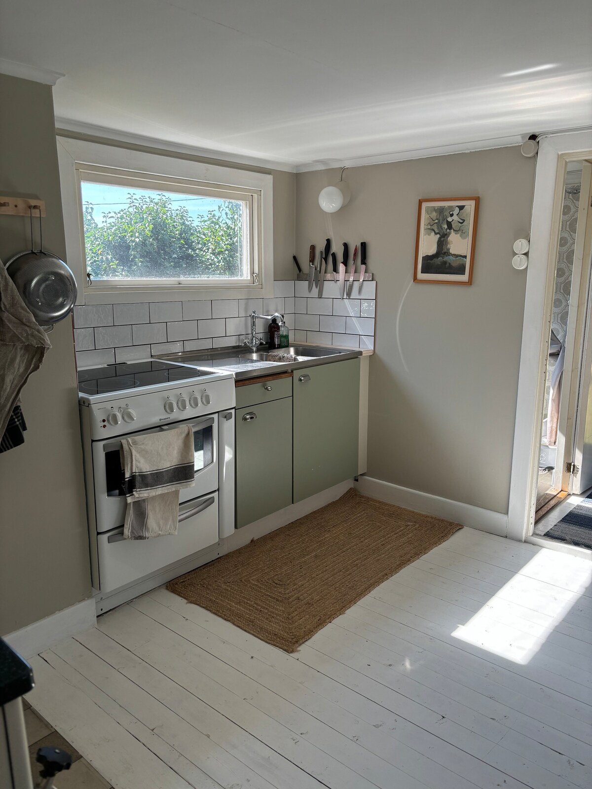 Kick back and relax in this calm and stylish space. Our tiny house is located in the corner of our garden with beautiful surroundings. It has a spacious loft with two beds, a bedroom with a family bed and a working area and a fully equipped kitchen. Outside there is a fire pit, a grill and a dining table to enjoy views of both fields (with deers) and forest. The sea is reachable by a short walk (5 min), where you can find a beach with a jetty.