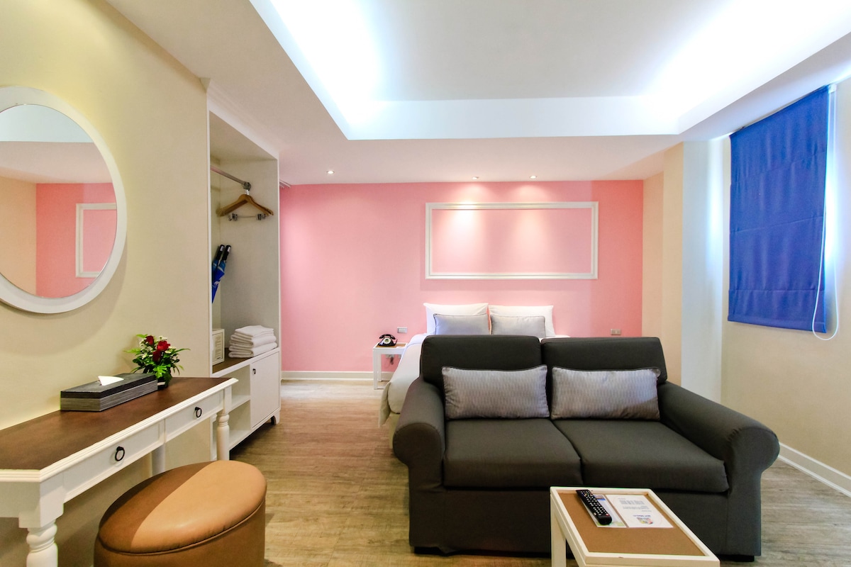 The Room is located in a beach resort, The Charm Patong. Located at the heart of Patong just 1 minute walk to the Patong Beach. Enjoy the sunset every day at the beach with so many happening restaurants and bars. Easy public transport available right outside the Hotel. The place is operated as a Hotel. Enjoy all the benefits of the hotel such as free pool, internet, common areas and gym. Fully furnished and well equipped to ensure a five star experience. Great location right next to Sheration