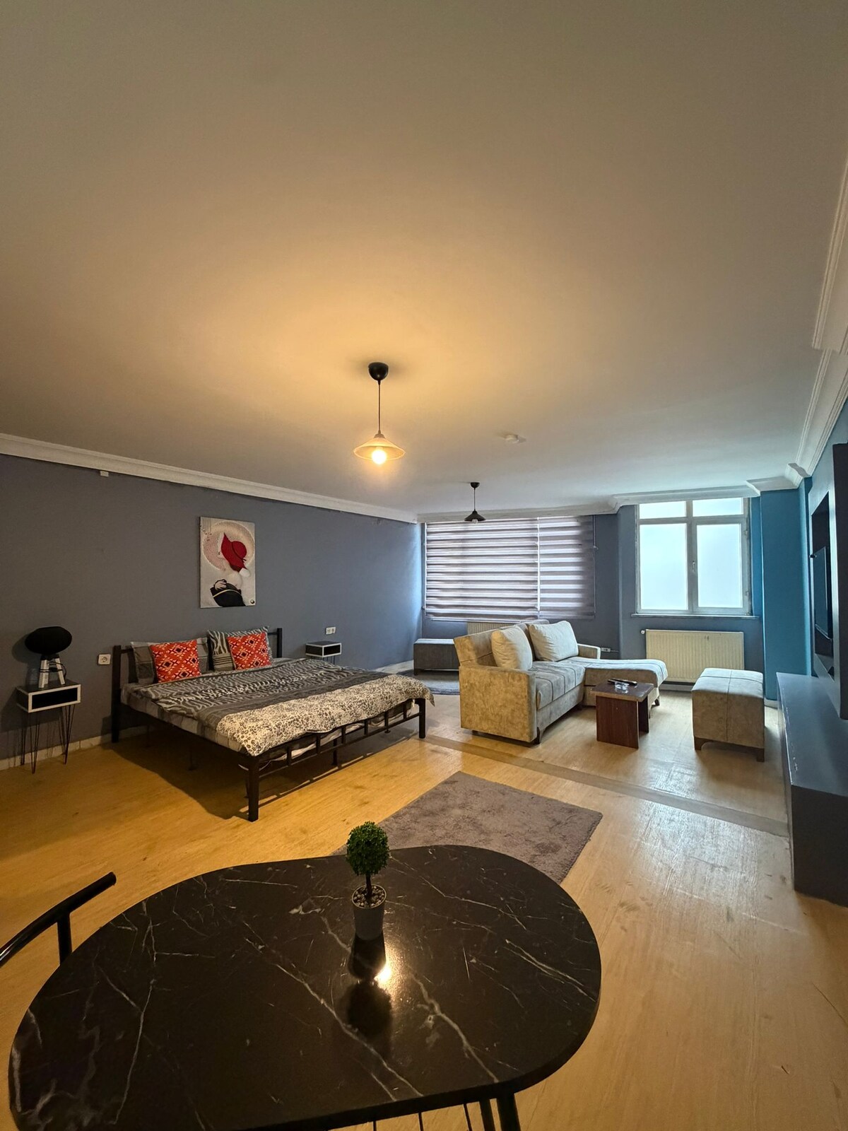 Hello, A large room with lots of sun. There is an Android box on the TV. Markets and transportation vehicles are close to the house. By car, you can reach the beach, train station in 10 minutes and the metro in 8 minutes.. You can take the metro from Sabiha Gökçen airport and get off at the "Kartal" station. If you have any questions, please ask. I hope you will enjoy your stay... (By the way, not the whole house the room is for rent)