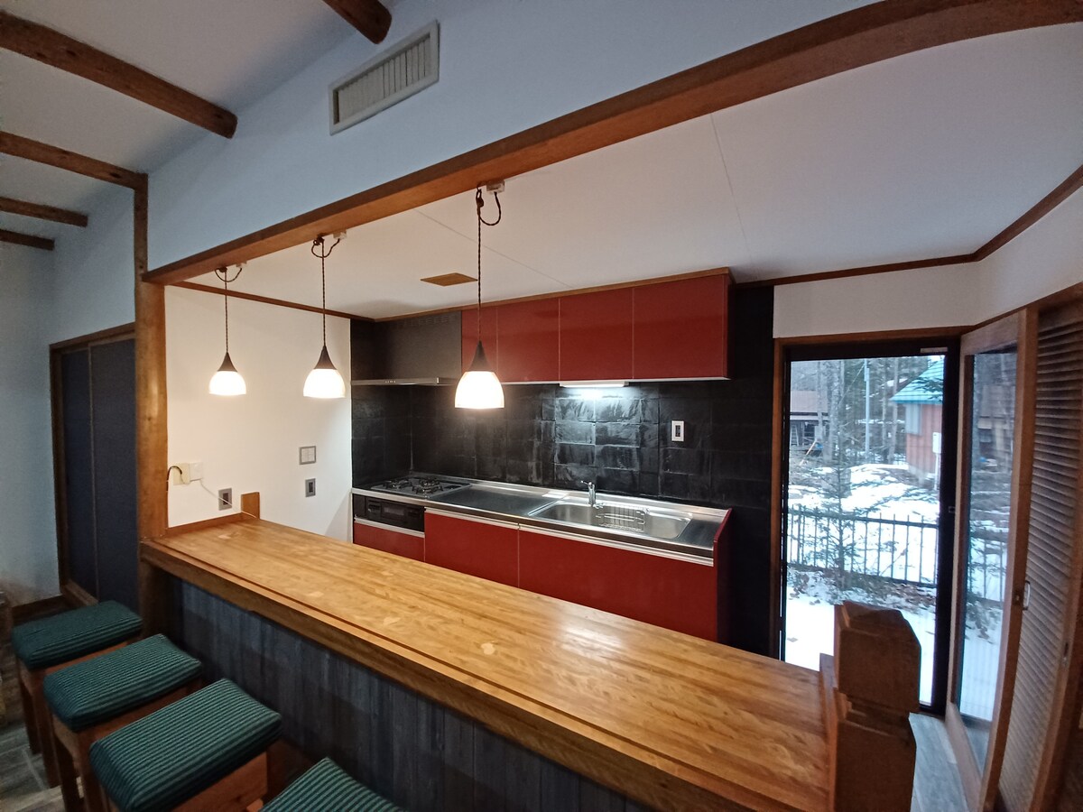 This house overlooks Lake Nojiri and has a superb view. There are several ski resorts (Myoko, Kurohime, Madarao) about 15-20 minutes away by car, making it a perfect base for winter sports. Enjoy the wood stove sauna and the water bath with a view. There are no private houses around, so you can listen to music and watch movies loudly. Because it is a house located deep in the mountains, we take the best measures, but in the warm season, insects come out. It snows a lot in winter. In autumn, fallen leaves dance. You will also need to adjust the wood stove fire yourself. It's not an easy house to live in, but we promise you a great view and experience. Enjoy cooking with a counter kitchen with a view, condiments and cooking utensils. (There is no equipment for BBQ)