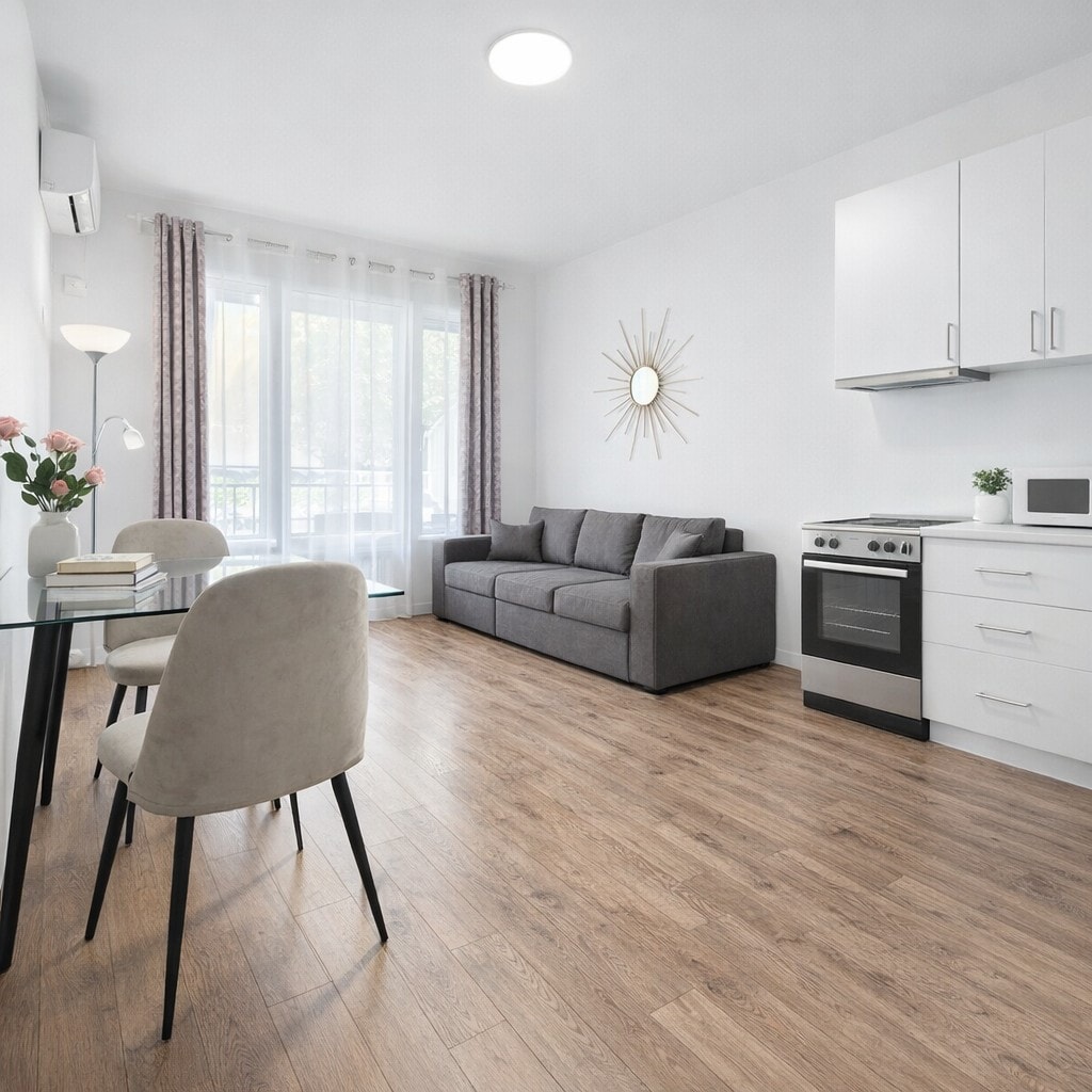 Step into a world of sophistication and artistry, where Parisian style meets contemporary luxury. Adorned with stylish mouldings, elegant furnishings, and natural plants, this apartment is a haven of elegance and charm. Lose yourself in the beauty of forest-themed mural, adding a touch of enchantment to the space. Whether you're curled up with a book in the cozy seating area or indulging in a glass of wine on the balcony, every moment is imbued with an air of refinement and grace.