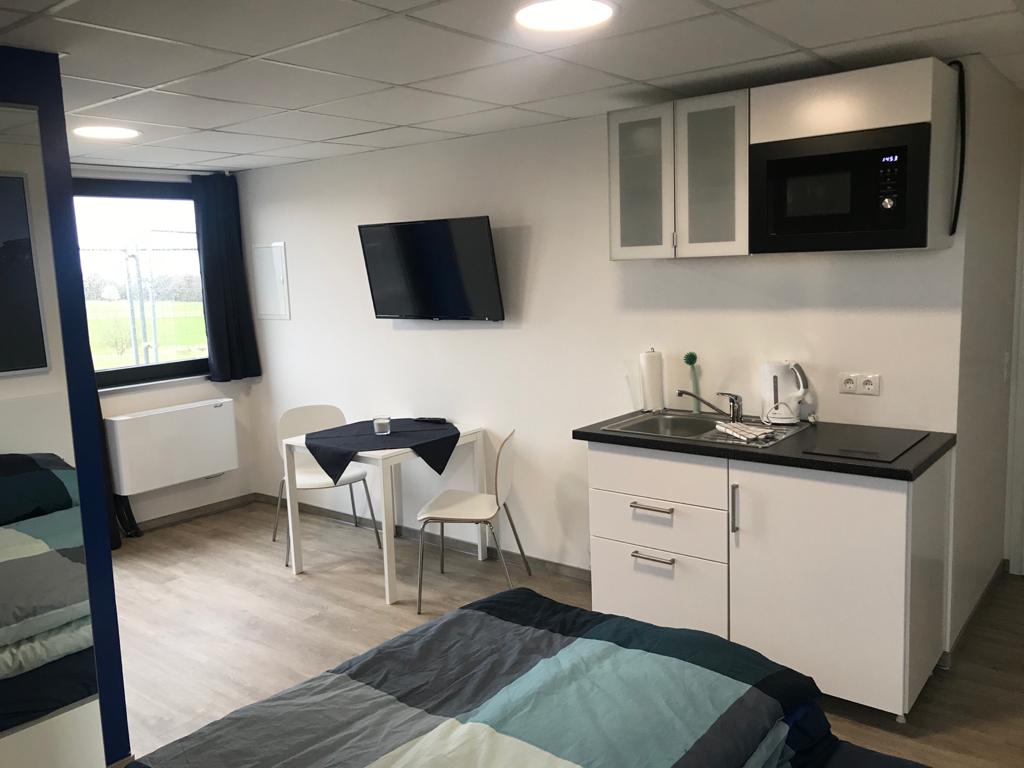 The room is equipped with a small kitchen (fridge with freezer compartment, stove with two plates, sink, cutlery, pots and co.) ideal if you want to cater for yourself. The bathroom is equipped with a large shower, sink and toilet. A wardrobe, Wi-Fi and a TV with satellite reception are available. From the window you have a direct view of the Unesco World Heritage Site "Hercules". Direct connection to the A 49, A 44. Prices include bed linens and towels. 01731586737