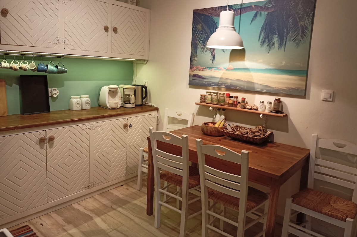 Located just by the sea side and next to: • famous beaches with unique beauty and colourful waters (100m) • the commercial centre of the traditional village (150m) • picturable harbour with excellent restaurants and bars by the sea side. (100m ) We provide also: 1. Parking in the plot 2. Sufficient equipped kitchenette 3. Bedding and towels replacement every 4-5 days. 4. TV, Air conditioning, WI-FI, 5. Useful booklet with info about doctors, pharmacy, hospital, for restaurants, etc.
