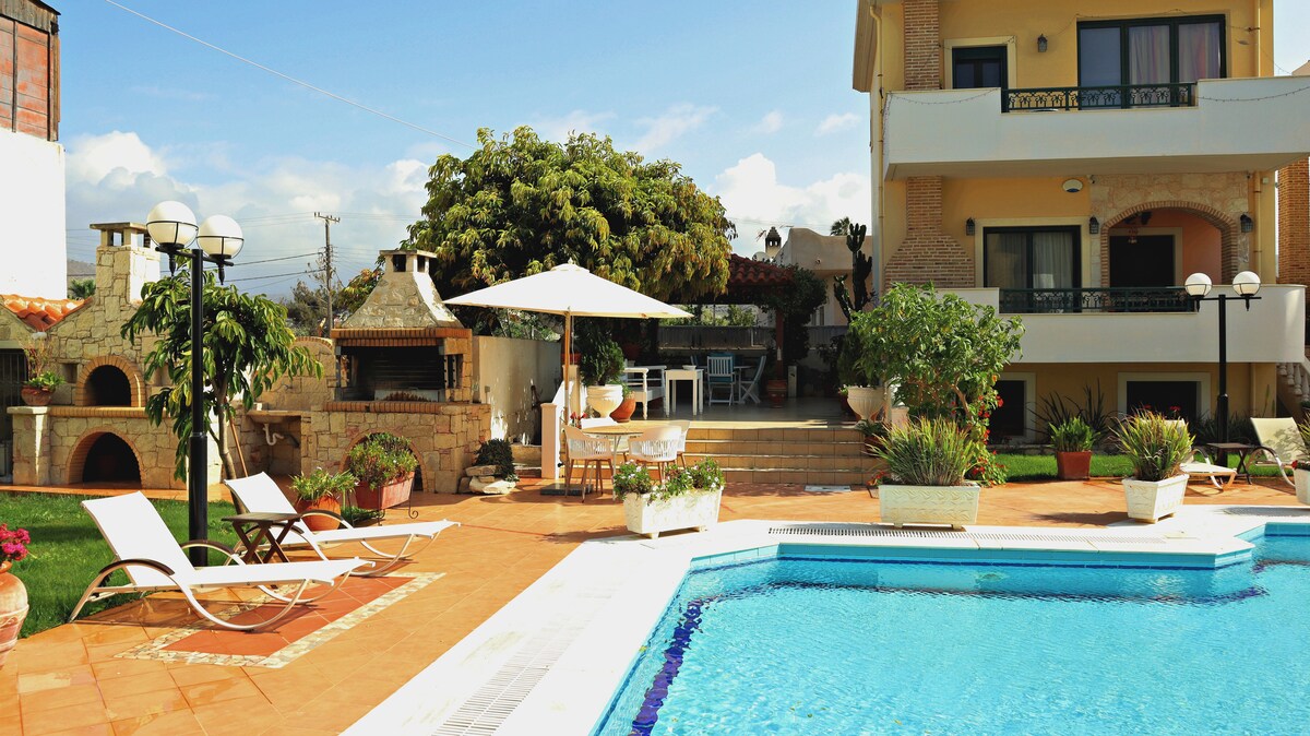 Seaside Apt in Gouves | pool, garden, BBQ