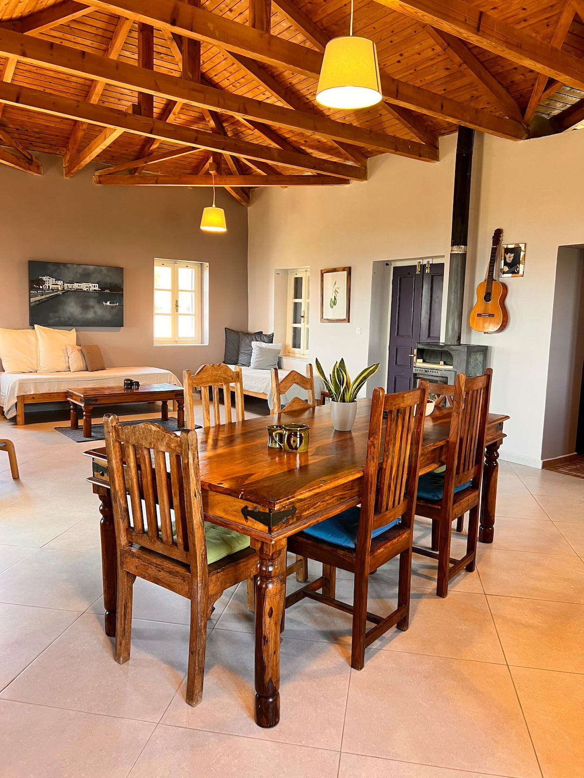 Όμορφο και άνετο σπίτι με ξύλο και πέτρα που σας ταξιδέυει στην τοπική παράδοση. Διαθέτει δύο κρεβατοκάμαρες με ξύλινο πάτωμα που κοιμίζουν 3 και 4 άτομα αντίστοιχα . Η πρόσβαση σε κουζίνα και μπάνιο γίνεται από την βεράντα όπως φαίνεται στις φωτογραφίες.Έχει κοινή αυλή με το εκκλησάκι που βρίσκεται δίπλα όπου μπορούν να παίζουν τα παιδιά της γειτονίας με ασφάλεια. Έχει πρόσβαση σε αυτήν αυτοκίνητο εώς την πόρτα του σπιτιού για Parking μικρής διαρκείας, απαγορεύται όμως το 24ωρο.